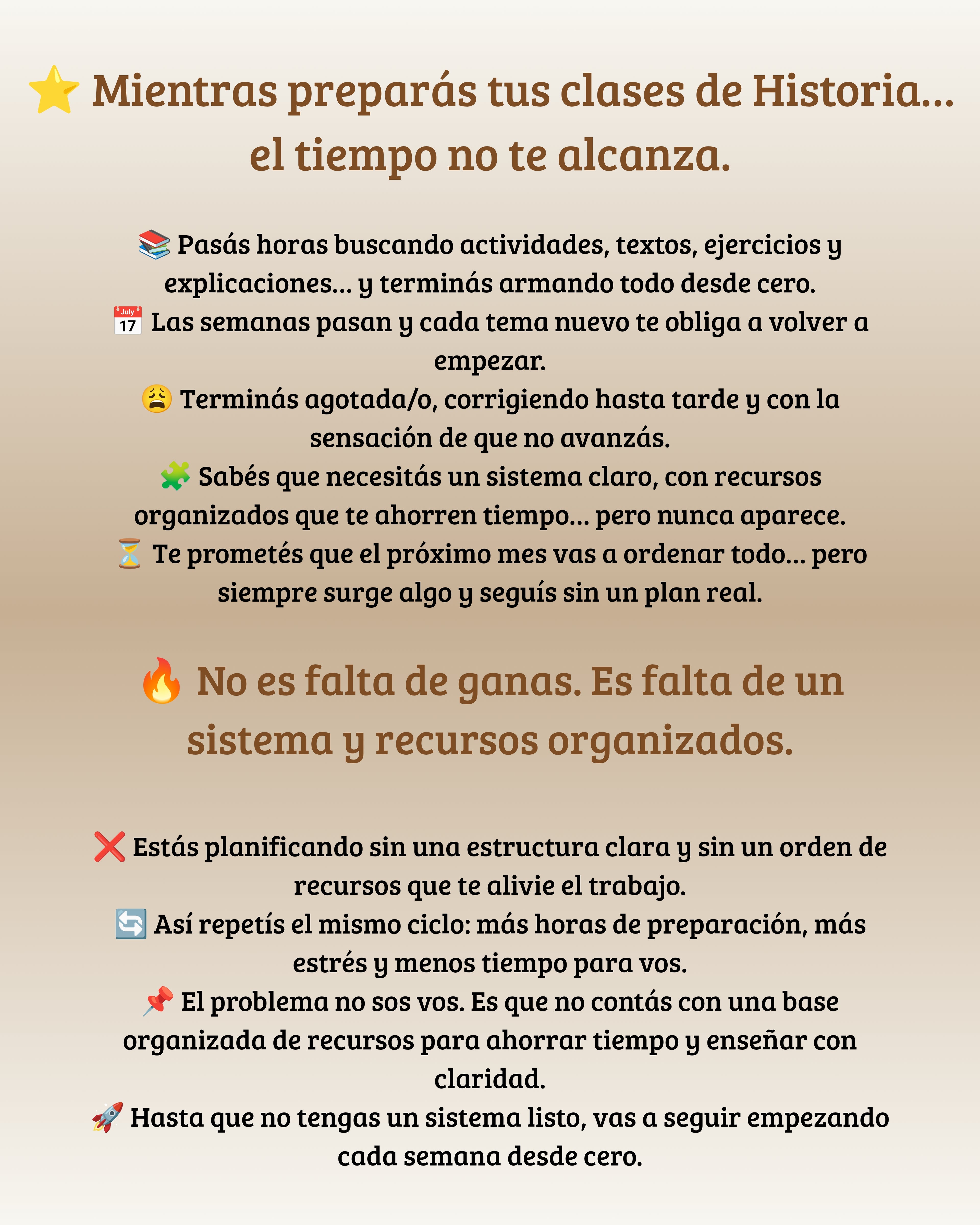 “Trabajo en dos escuelas y estaba agotado de armar materiales desde cero. El pack me dio una base sólida de recursos para planificar el año y luego ajustar a mi estilo. Mis alumnos entienden mejor los procesos históricos y yo reduzco muchísimo el tiempo de preparación.”
